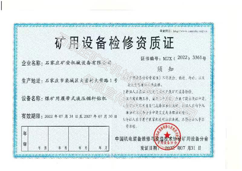 石家莊礦安機(jī)械設(shè)備有限公司成立于2011年3月,公司位于風(fēng)景優(yōu)美、科技發(fā)達(dá)、交通便利的石家莊市欒城區(qū),是一家專注生產(chǎn)煤礦井下支護(hù)機(jī)具(錨桿鉆機(jī))和安全鉆機(jī)(防突,架柱等)及氣動(dòng)隔膜泵等礦用機(jī)械設(shè)備的********,是國(guó)內(nèi)煤礦機(jī)械裝備的生產(chǎn)商和服務(wù)商,根據(jù)用戶需求提供井下適用的鉆機(jī)施工解決方案。公司致力于打造研發(fā)、制造、銷售、服務(wù)為一體的現(xiàn)代化企業(yè),全心全意為煤礦生產(chǎn)保駕護(hù)航。 ? 公司建有裝配車間、機(jī)加車間和調(diào)試車間,擁有嚴(yán)格的質(zhì)量控制體系、先進(jìn)的產(chǎn)品開發(fā)系統(tǒng)、完善的試驗(yàn)檢測(cè)設(shè)施、良好的售后服務(wù)保障。先后與中煤科工集團(tuán)沈陽研究院、西安研究院、太原理工大學(xué)、燕山大學(xué)等知名院校建立了緊密的合作關(guān)系。 ? 公司產(chǎn)品主要銷往山西、陜西、山東、內(nèi)蒙古、黑龍江、云南、貴州等七十多個(gè)礦區(qū)和地方煤礦,擁有一支成熟的售后技術(shù)團(tuán)隊(duì),并且和中煤集團(tuán)、華電煤業(yè)集團(tuán)、華潤(rùn)煤業(yè)集團(tuán)、潞安集團(tuán)、山西焦煤、淮北礦業(yè)等國(guó)內(nèi)知名企業(yè)達(dá)成長(zhǎng)期合作關(guān)系。 ? 公司始終秉持“讓煤礦生產(chǎn)更安全”的發(fā)展使命,力求誠(chéng)信與創(chuàng)新,追求卓越與完美,深知“實(shí)實(shí)在在、心無旁騖做實(shí)業(yè)”,這才是本分!石家莊礦安機(jī)械設(shè)備有限公司愿與您攜手共進(jìn),共同發(fā)展!為客戶創(chuàng)造價(jià)值,提供優(yōu)質(zhì)的產(chǎn)品和*佳的服務(wù)是我們永無止境的理念!